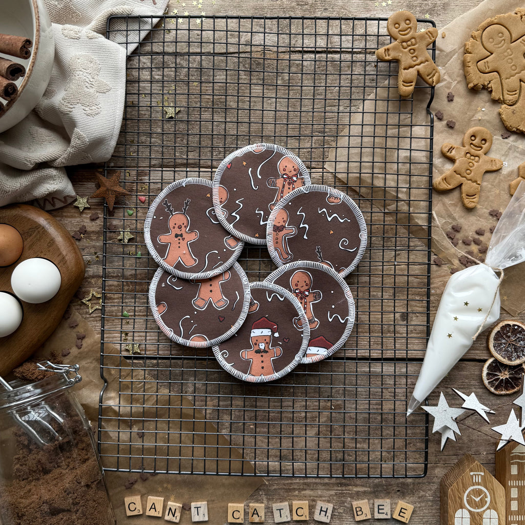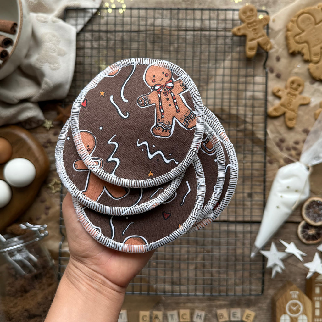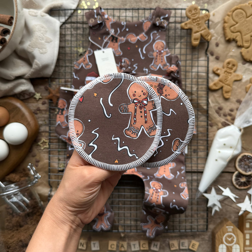 These are our super eco breast pads and the printed fabric used is our waste from making our bigger items. They are loved so much by our customers, I myself have used them for two years with my son and now they have a second life as mucky face wipes in the bath.