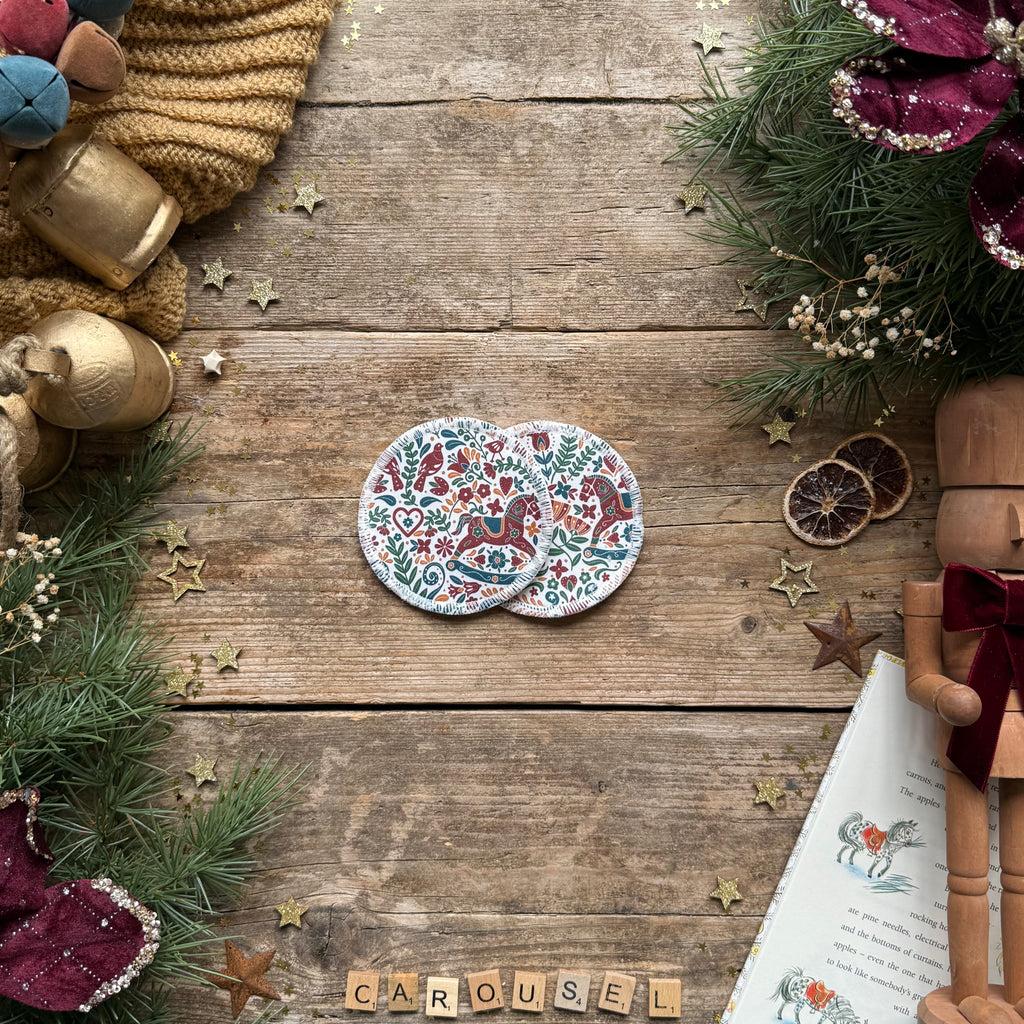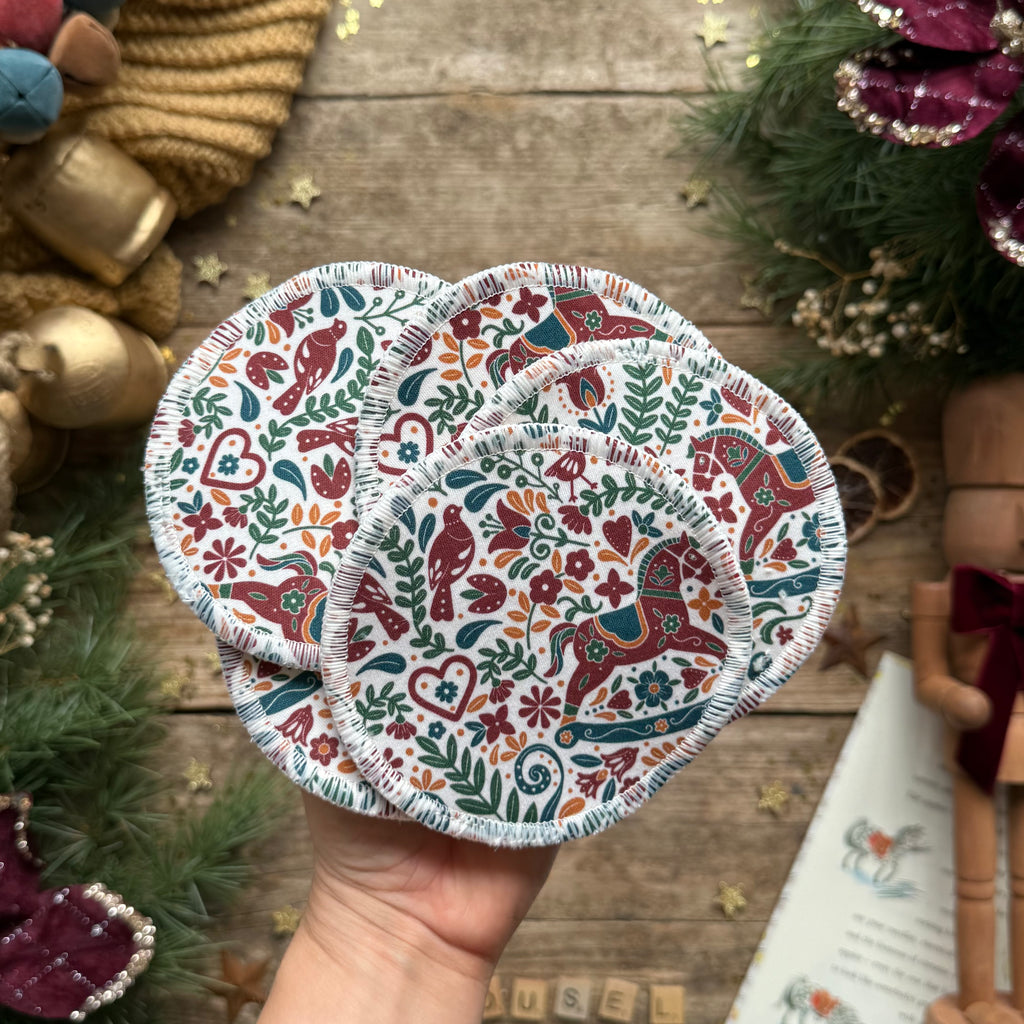 These are our super eco breast pads and the printed fabric used is our waste from making our bigger items. They are loved so much by our customers, I myself have used them for two years with my son and now they have a second life as mucky face wipes in the bath.
