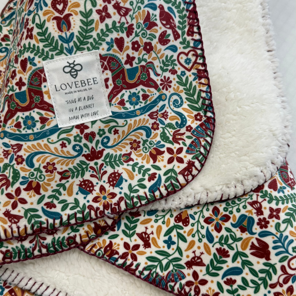 These blankets are printed on a different base to our hand-made clothing, meaning the ink takes differently. The result is similar but not exact print so please note they won't be an exact match for the clothing items.