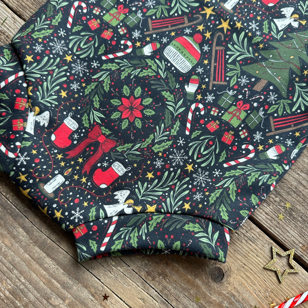 Main body - 100% organic cotton fabric with interlock knit, printed with Ultra-color technology for vibrant colour and improved wash durability. Cuffs - 95% organic cotton, 5% elastane. Both certified organic cotton by Global Organic Textile Standards (GOTS).