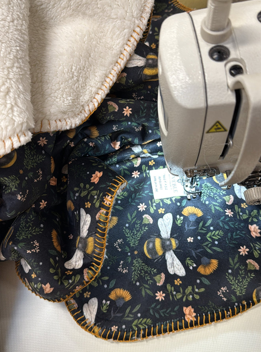 Edges are professionally bound with your custom choice of colours and are finished by hand. They are machine long arm stitched with a complimenting pattern.