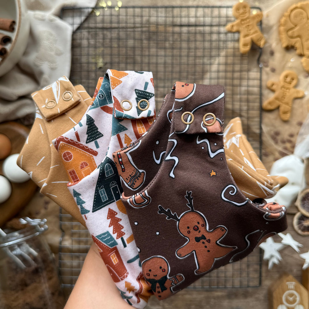 Rompers, Dresses and bibs are fastened with a metal popper. The poppers I use are made with environmentally friendly paint, quality is much better than general. Snap them together to wash as they can get stuck in the drum.
