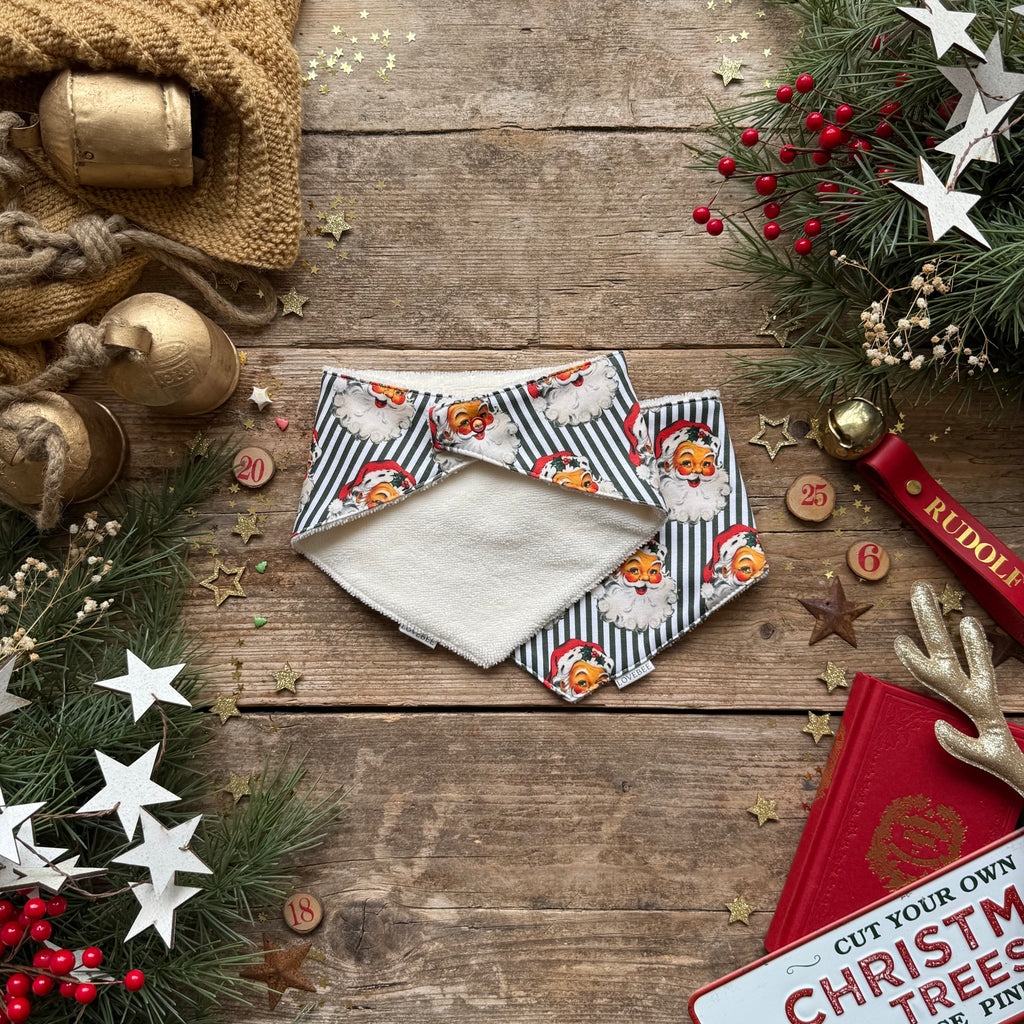 Two bibs are photographed to show pattern placement variations. The listing is for one handmade organic dribble bib. You can purchase a 3 pack separately with a discount.