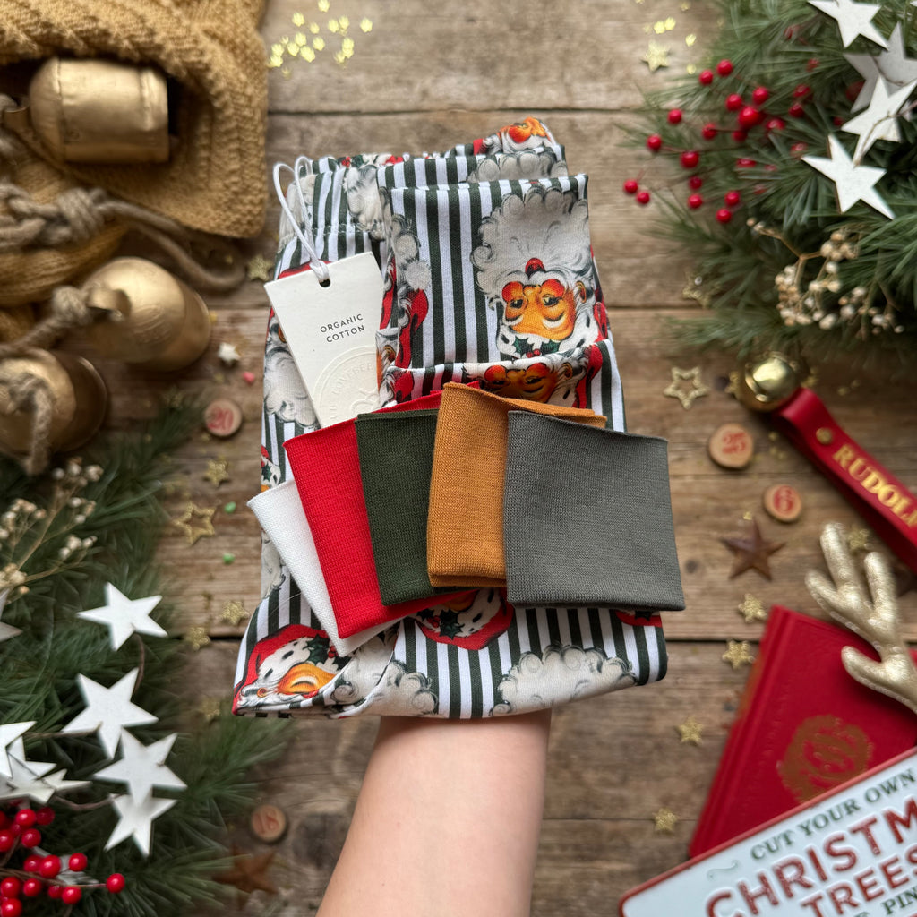 Main body - 100% organic cotton fabric with interlock knit, printed with Ultra-color technology for vibrant colour and improved wash durability. Cuffs - 95% organic cotton, 5% elastane. Both certified organic cotton by Global Organic Textile Standards (GOTS).