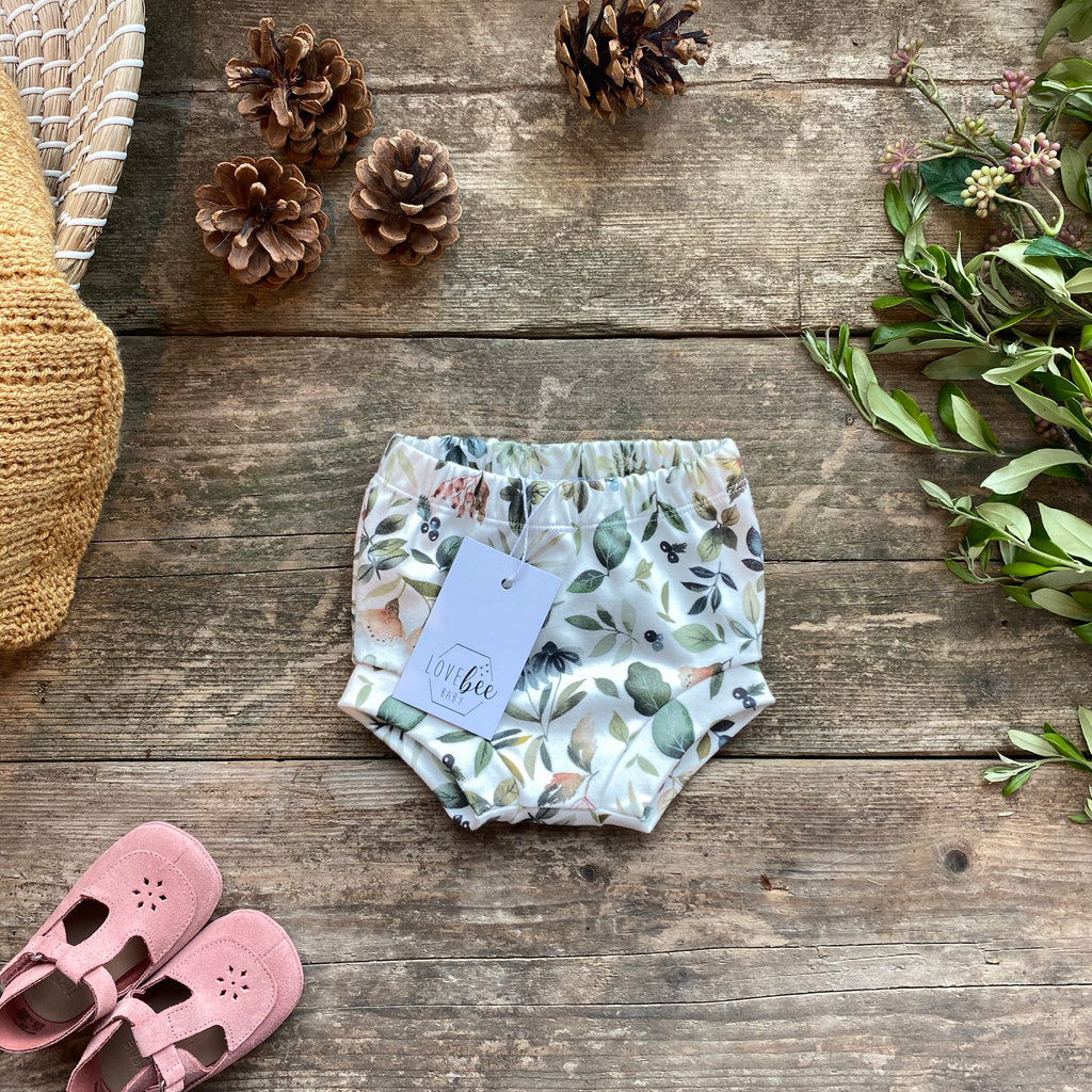 Our bloomers have a cuff added in a matching print. They sit a little lower on the thigh than a standard bloomer and don't have elastic around the cuff.