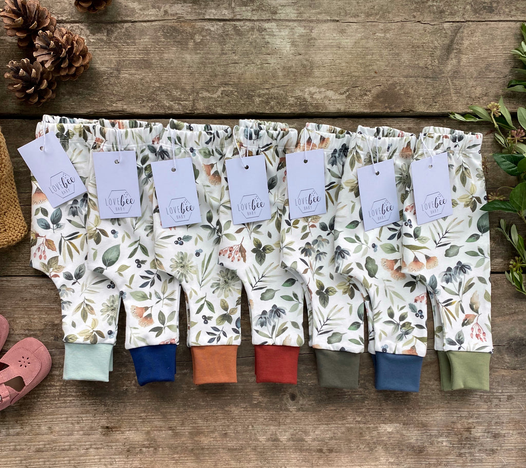 Make it personal with your choice of fit. LoveBee is an eco brand and we design items to be cloth nappy friendly. Harem leggings are up to the age of 3 years and have room for both styles of nappies or without.