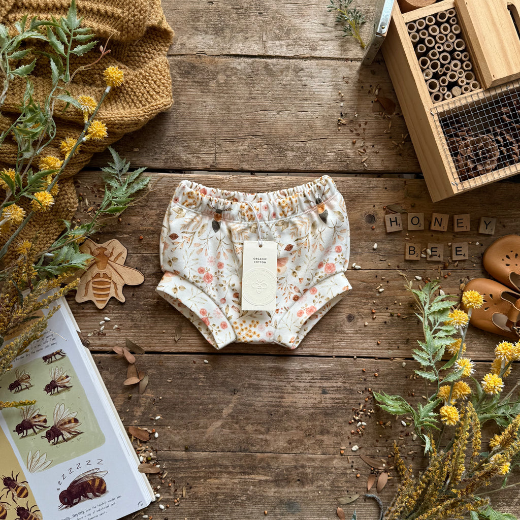 Our bloomers have a cuff added in a matching print. They sit a little lower on the thigh than a standard bloomer and don't have elastic around the cuff.
