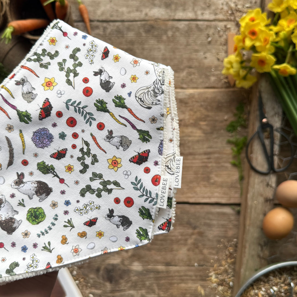Our dribble bibs are backed in a organic bamboo. Bamboo is sustainable and has so many benefits including being Hypoallergenic, Thermo-Control and its Anti-Bacterial properties. Bamboo has the unique ability to sweep dribble away from the skin, then evaporating it through the garments surface, keeping your little one dry.