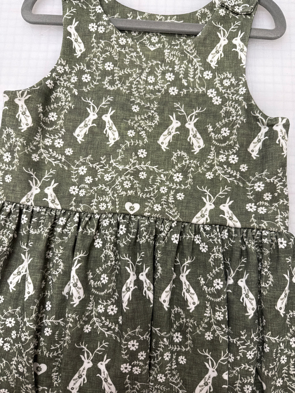 Rompers, Dresses and bibs are fastened with a metal popper. The poppers I use are made with environmentally friendly paint, quality is much better than general. Snap them together to wash as they can get stuck in the drum.
