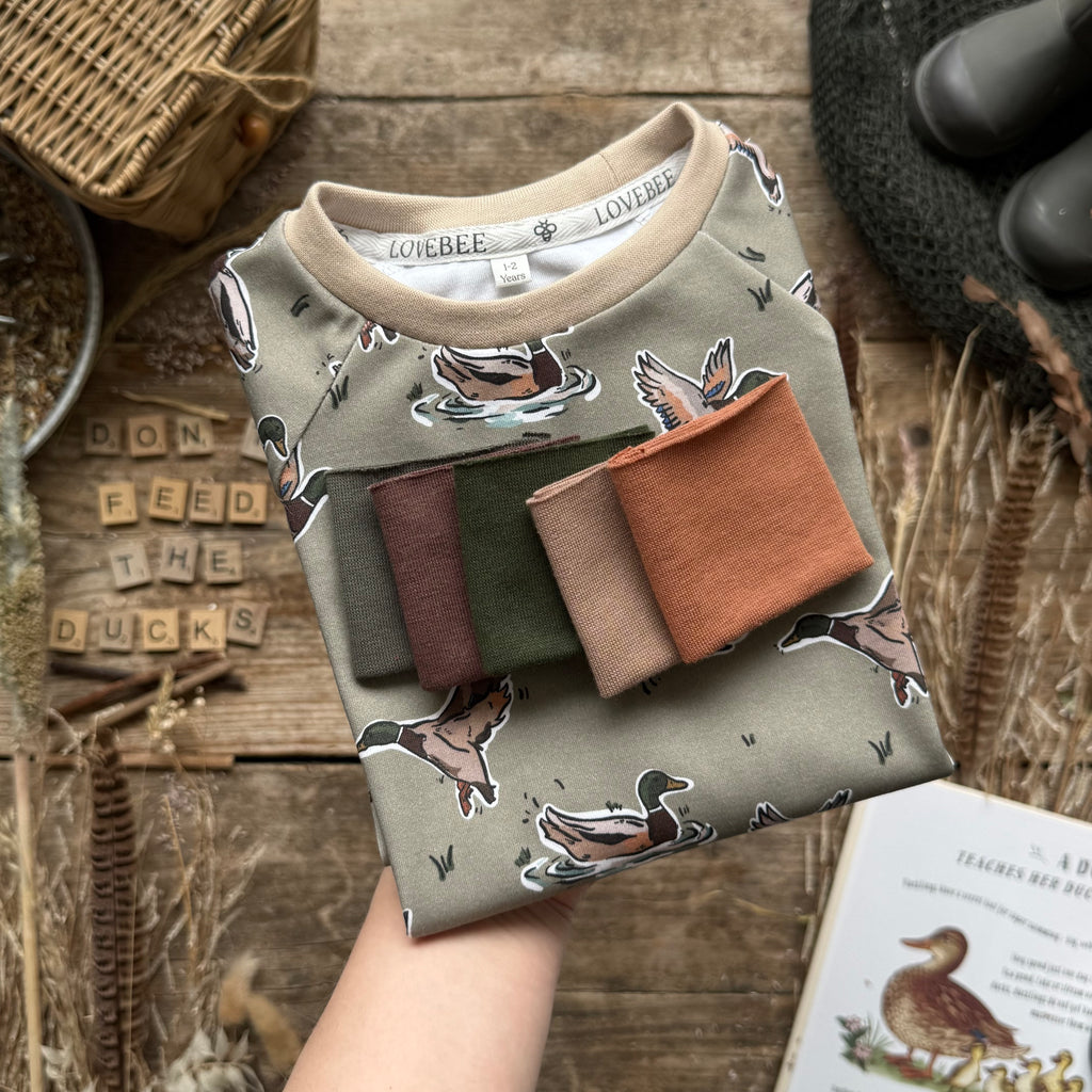 Main body - 100% organic cotton fabric with interlock knit, printed with Ultra-color technology for vibrant colour and improved wash durability. Cuffs - 95% organic cotton, 5% elastane. Both certified organic cotton by Global Organic Textile Standards (GOTS).