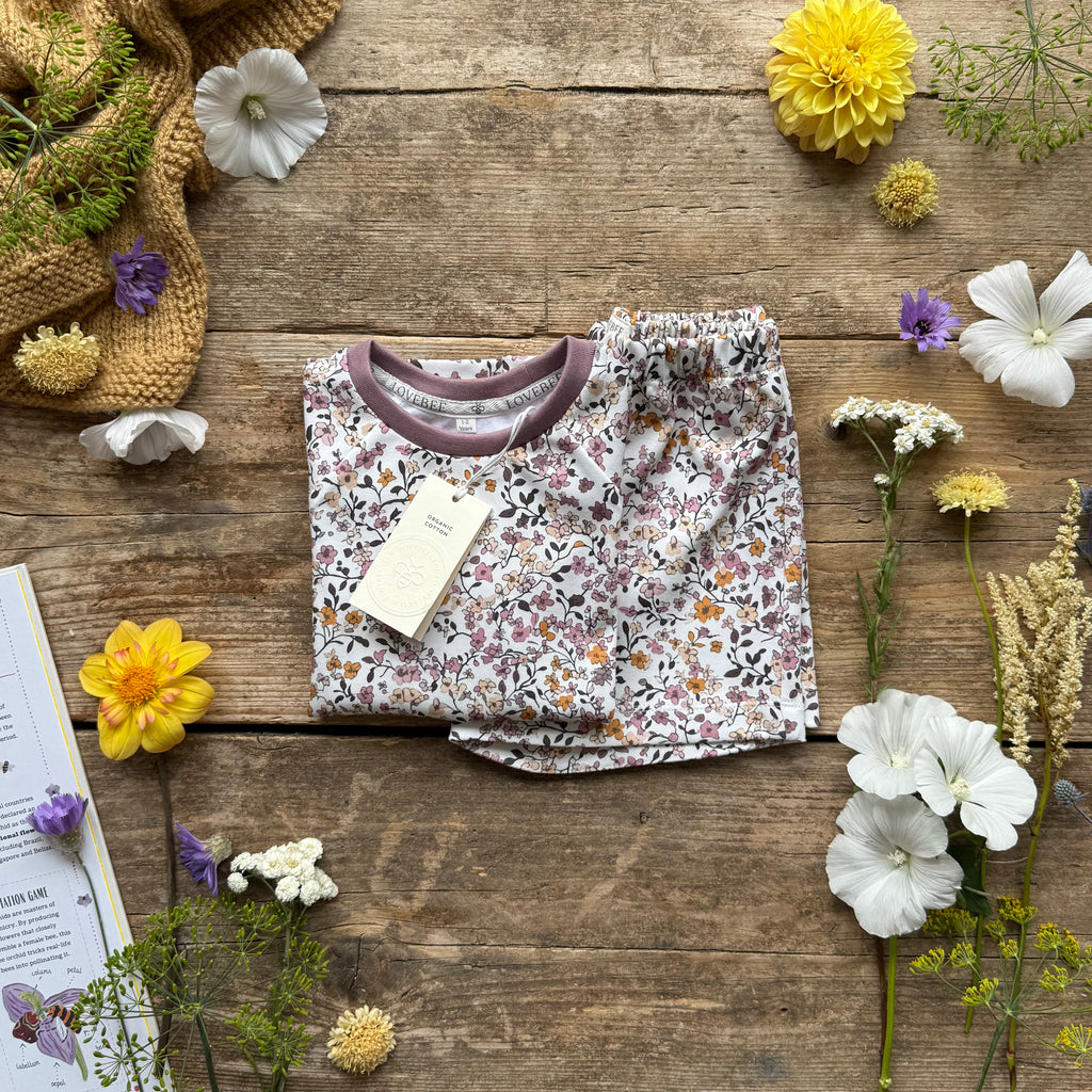 Main body - 100% organic cotton fabric with interlock knit, printed with Ultra-color technology for vibrant colour and improved wash durability. Cuffs - 95% organic cotton, 5% elastane. Both certified organic cotton by Global Organic Textile Standards (GOTS).