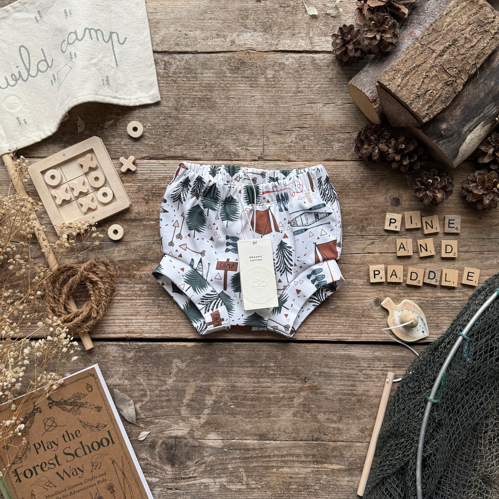 Our bloomers have a cuff added in a matching print. They sit a little lower on the thigh than a standard bloomer and don't have elastic around the cuff.