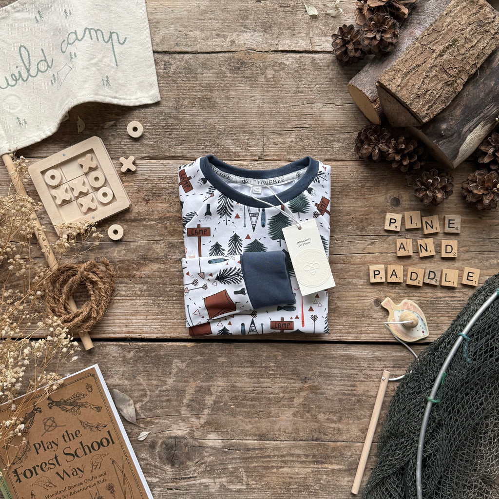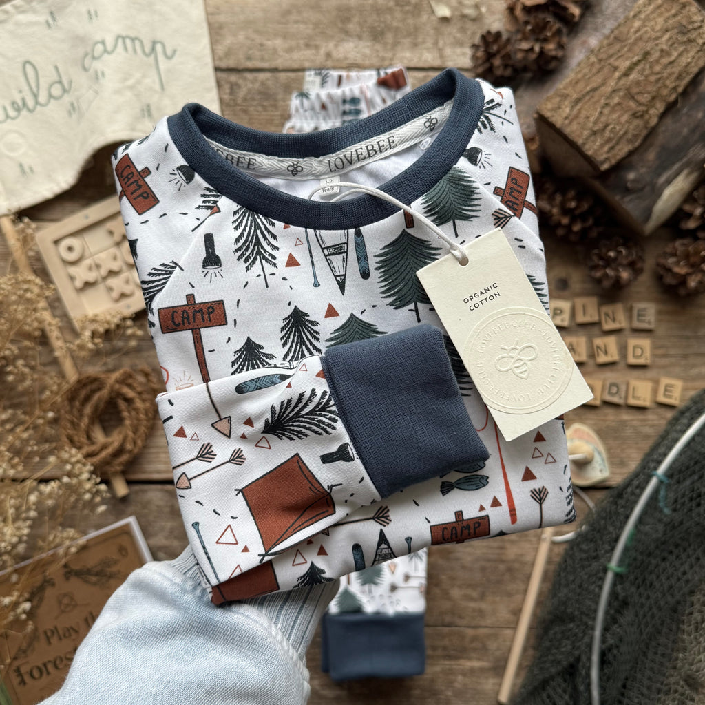 Main body - 100% organic cotton fabric with interlock knit, printed with Ultra-color technology for vibrant colour and improved wash durability. Cuffs - 95% organic cotton, 5% elastane. Both certified organic cotton by Global Organic Textile Standards (GOTS).