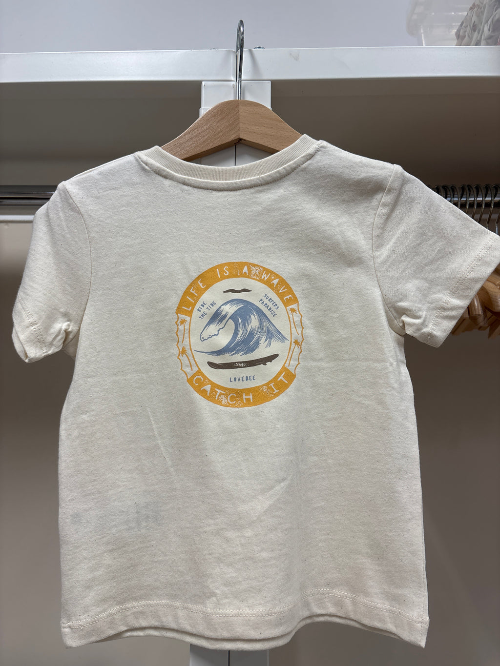 Organic Baby T-shirts printed in our UK studio using a new method of DTF printing. Our designs are printed onto a special film using water based inks and then we are able to place these onto our t-shirts. The neckline has 2 poppers for easy-dressing.