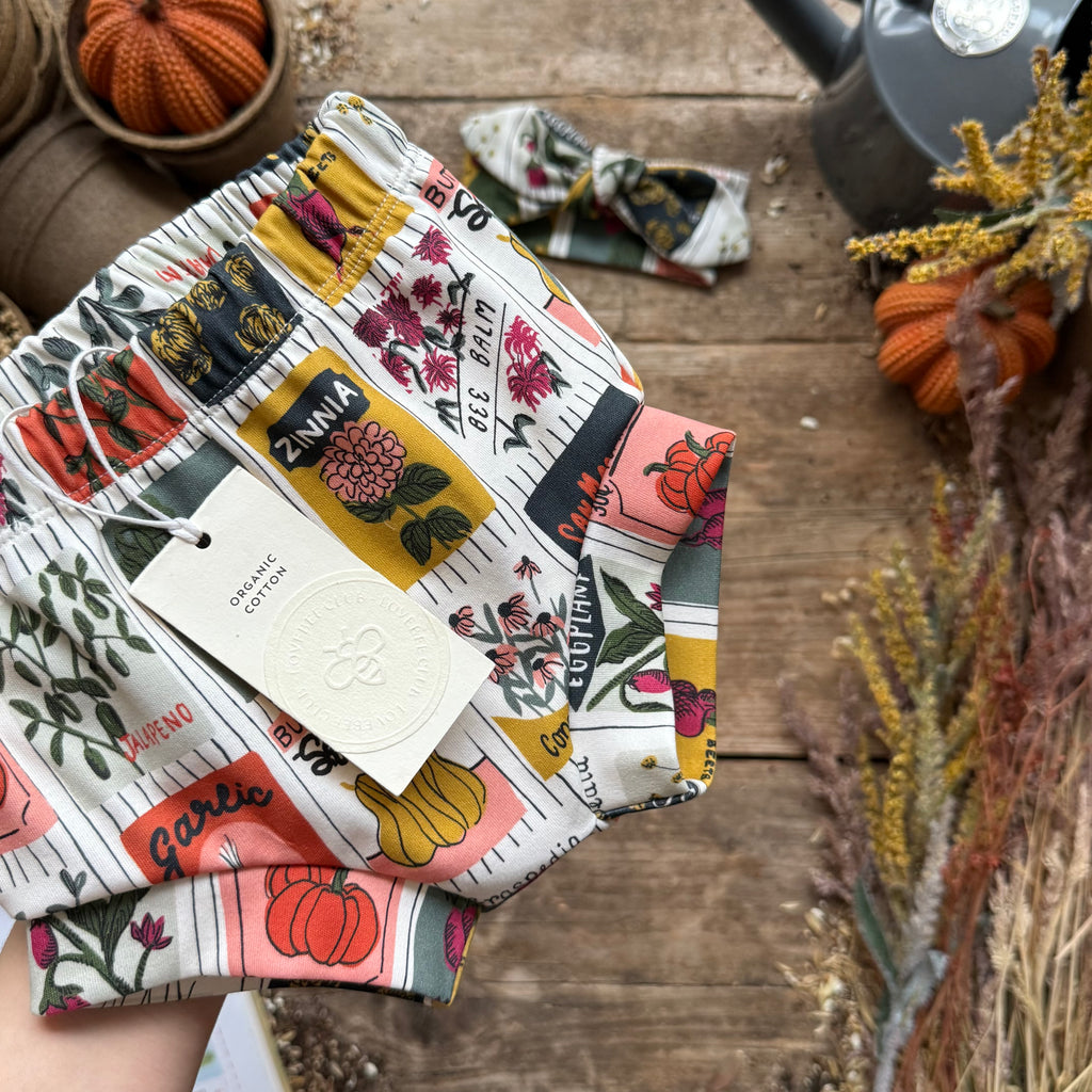 Our bloomers have a cuff added in a matching print. They sit a little lower on the thigh than a standard bloomer and don't have elastic around the cuff.
