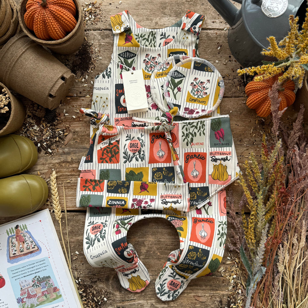 Rompers, Dresses and bibs are fastened with a metal popper. The poppers I use are made with environmentally friendly paint, quality is much better than general. Snap them together to wash as they can get stuck in the drum.