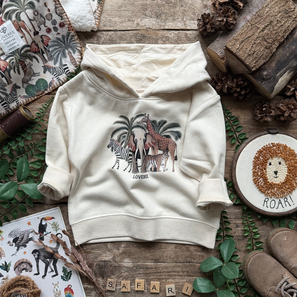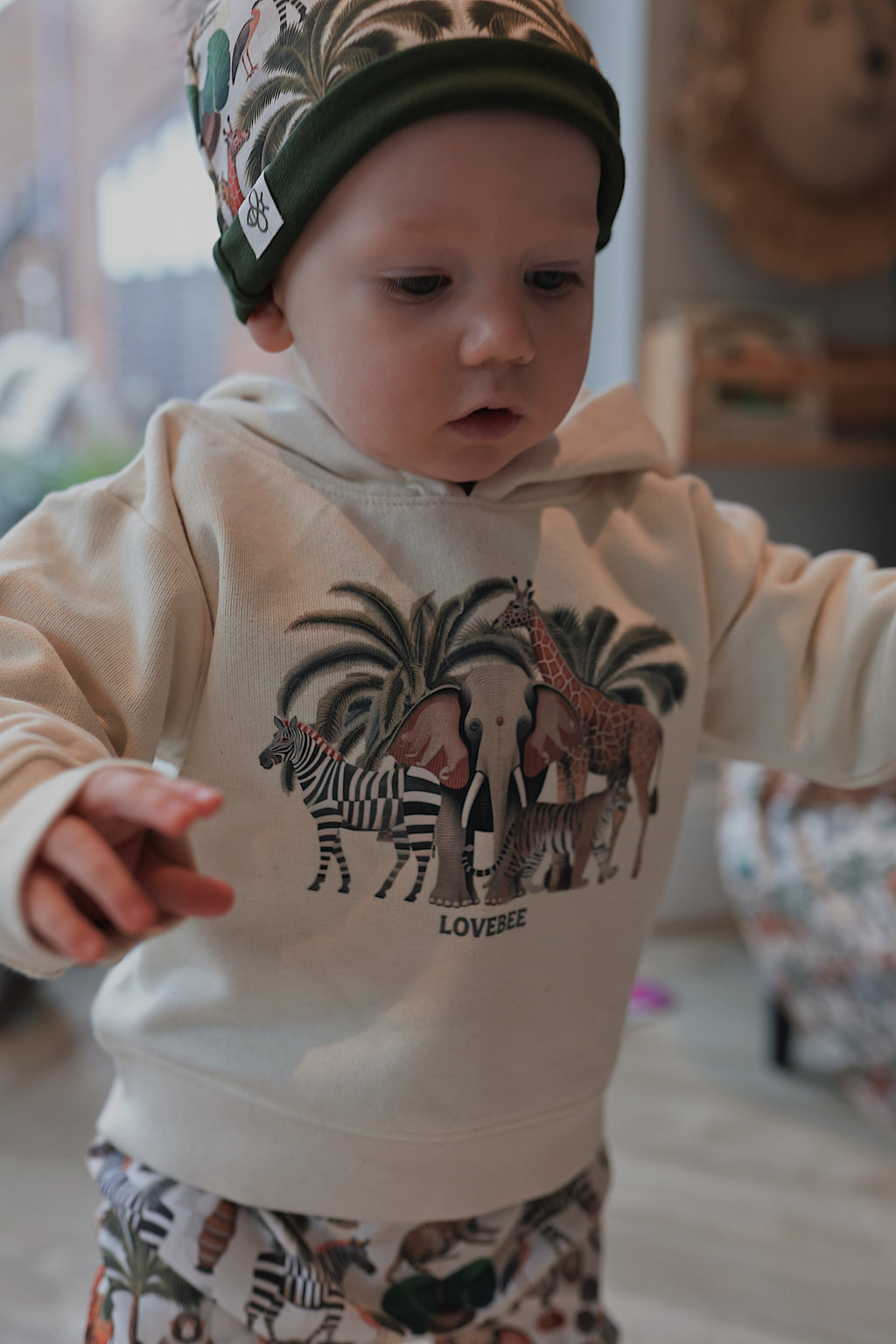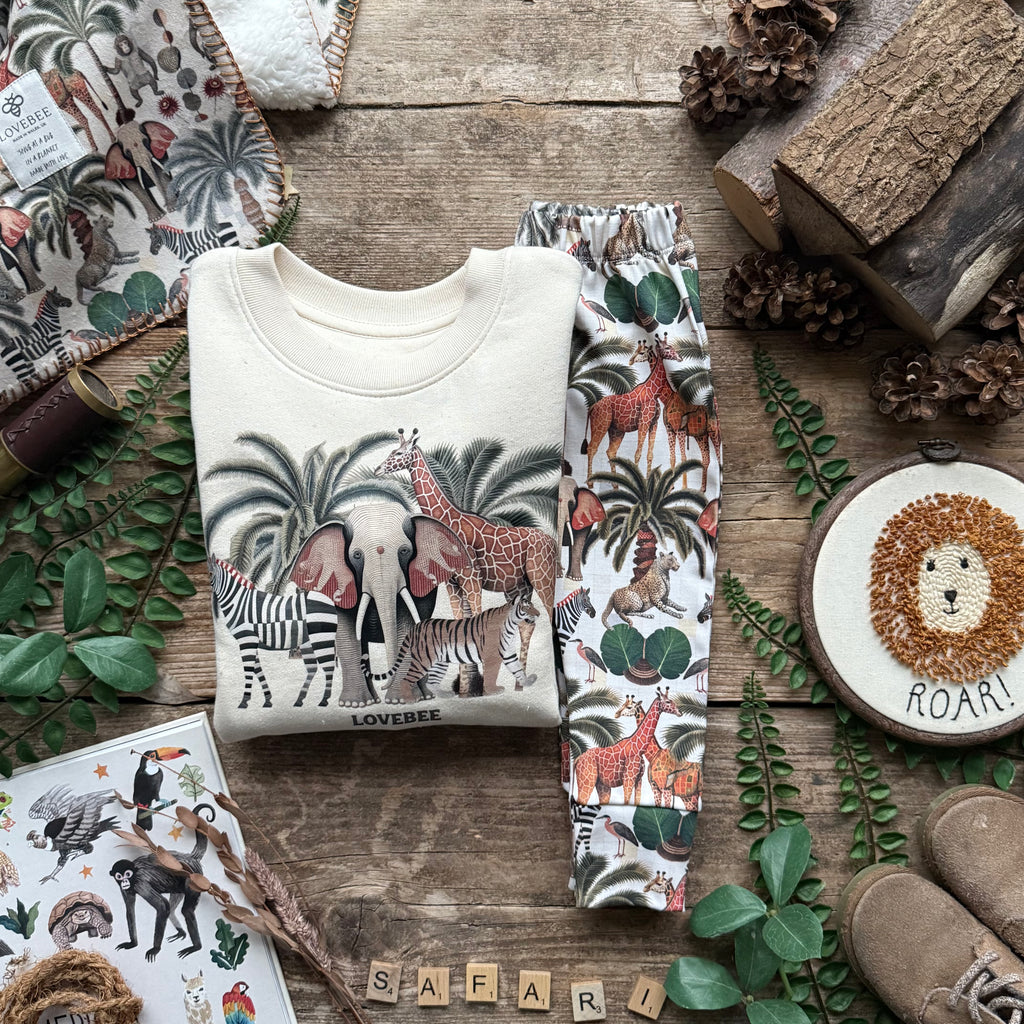 Main body - 100% organic cotton fabric with interlock knit, printed with Ultra-color technology for vibrant colour and improved wash durability. Cuffs - 95% organic cotton, 5% elastane. Both certified organic cotton by Global Organic Textile Standards (GOTS).