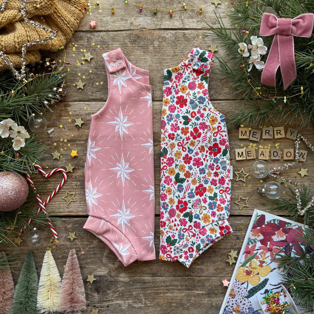 Rompers, Dresses and bibs are fastened with a metal popper. The poppers I use are made with environmentally friendly paint, quality is much better than general. Snap them together to wash as they can get stuck in the drum.