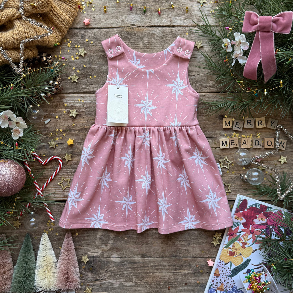 Made from the softest printed organic cotton, LoveBee's sleeveless dress is functional, and cosy, and provides your little ones with the freedom they need to explore in comfort. Two poppers on each shoulder for easy dressing.