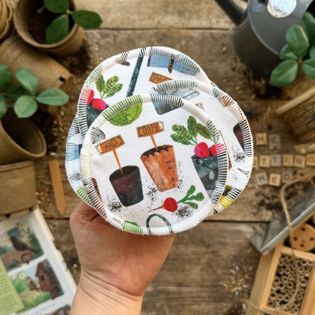 These are our super eco breast pads and the printed fabric used is our waste from making our bigger items. They are loved so much by our customers, I myself have used them for two years with my son and now they have a second life as mucky face wipes in the bath.