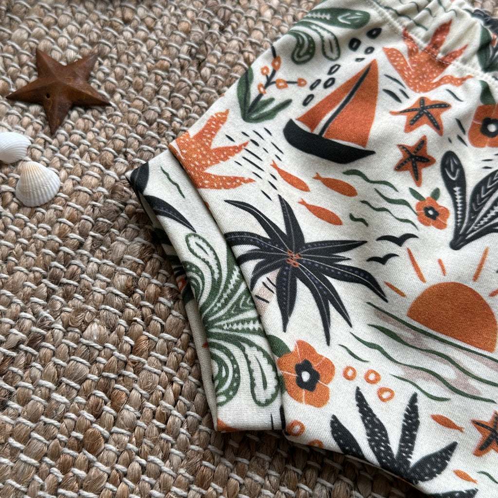 Cuffed shorts - A slimmer fit and style shorts with matching print cuff. These come up higher on the leg and suited to older children or slimmer fit.
