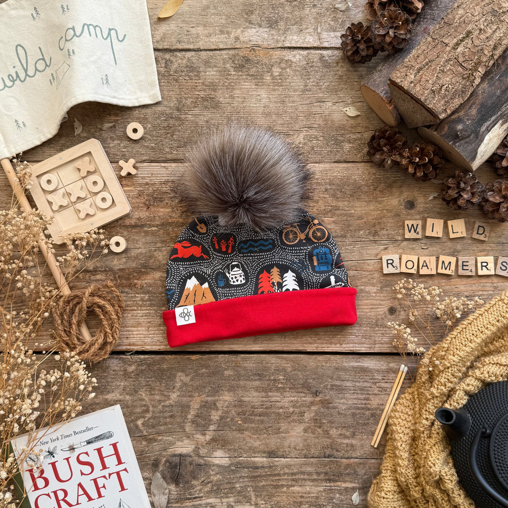 Finished with a super fluffy handmade faux fur pom. Use code NOPOM at the checkout if you already own one and can use one pom for multiple hats. Pick your lining wisely they are reversible so plenty of options.