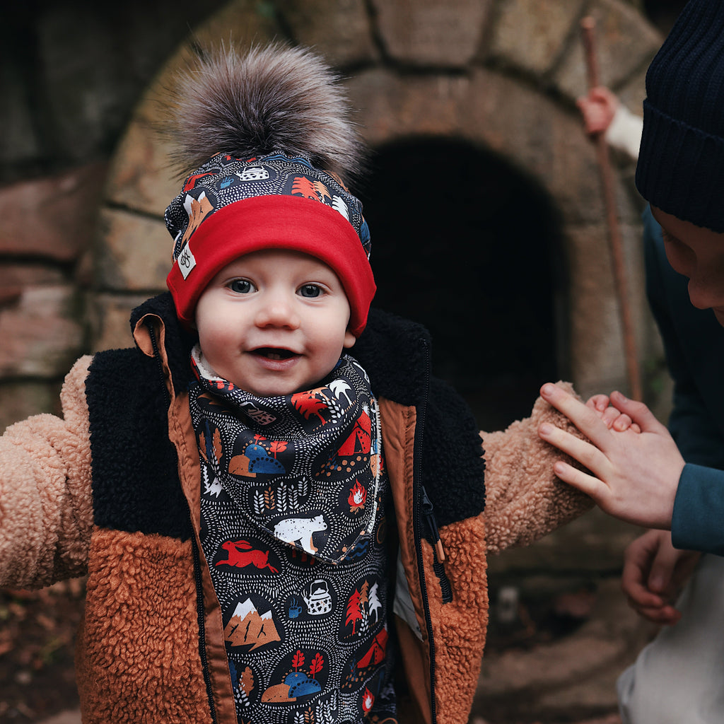 Hats are finished with a handmade 100% faux fur pom pom with wooden toggle.