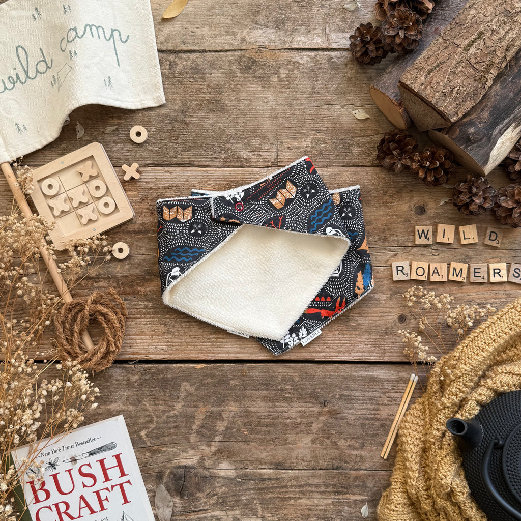 Our dribble bibs are backed in a organic bamboo. Bamboo is sustainable and has so many benefits including being Hypoallergenic, Thermo-Control and its Anti-Bacterial properties. Bamboo has the unique ability to sweep dribble away from the skin, then evaporating it through the garments surface, keeping your little one dry.