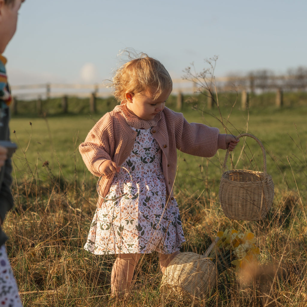 Rompers, Dresses and bibs are fastened with a metal popper. The poppers I use are made with environmentally friendly paint, quality is much better than general. Snap them together to wash as they can get stuck in the drum.