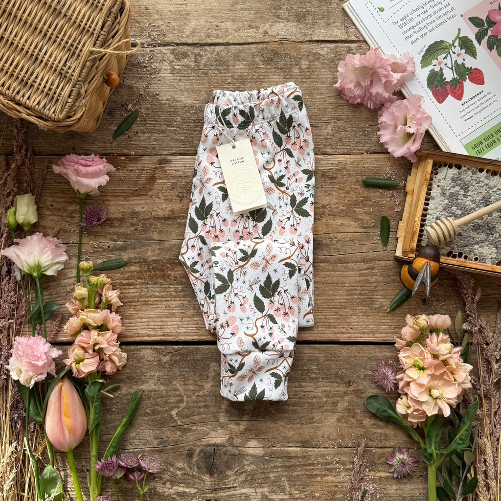 Main body - 100% organic cotton fabric with interlock knit, printed with Ultra-color technology for vibrant colour and improved wash durability. Cuffs - 95% organic cotton, 5% elastane. Both certified organic cotton by Global Organic Textile Standards (GOTS).